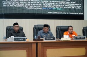 Ketua DPRD Kabupaten Sukabumi, Budi Azhar Mutawali, menyampaikan bahwa Komisi Pemilihan Umum (KPU) Kabupaten Sukabumi telah menerbitkan Keputusan KPU Kabupaten Sukabumi Nomor 10 Tahun 2025 pada tanggal 6 Februari 2025, mengenai penetapan pasangan calon Bupati dan Wakil Bupati terpilih. Sesuai jadwal yang ditetapkan, Budi Azhar Mutawali menegaskan bahwa rapat kali ini merupakan bagian penting dalam proses penyerahan kekuasaan yang demokratis.